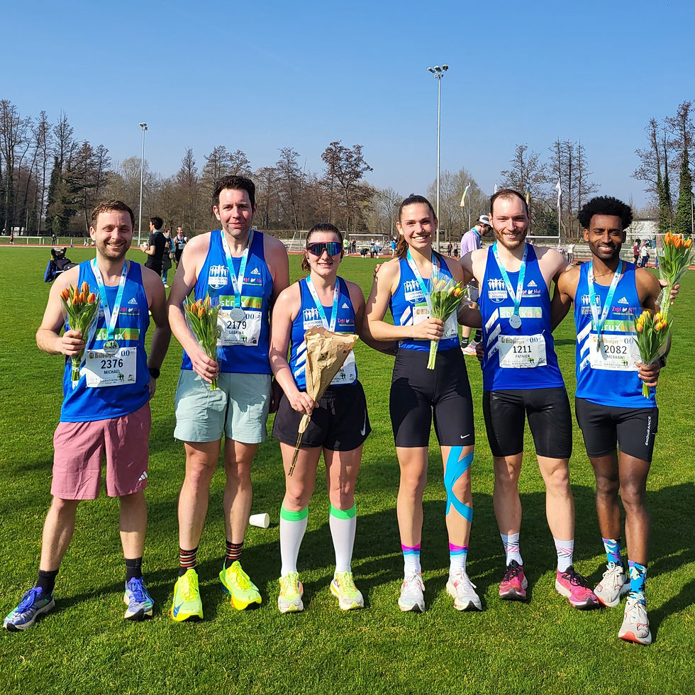 Auf der zweiten Rennhälfte konnte Merhawi sogar noch etwas zulegen. Nach der Schlussrunde im schönen Bienwaldstadion hatte er allen Grund zur Freude: In 1:15:17 Stunden verbesserte er seine Bestzeit um ganze zwei Minuten. Unter den 1.578 Finishern kam er als 19. ins Ziel. Zufrieden, wenn auch weit weg von einer Bestzeit, konnte auch Patrick an diesem Tag sein. Als 37. Läufer erreichte er nach 1:18:16 Stunden das Ziel. Wie Merhawi ebenfalls sehr deutlich unter seiner Bestzeit konnte Michael bleiben. Um gut eineinhalb Minuten gelang es ihm, sich auf 1:22:34 Stunden zu verbessern – eine perfekte Ausgangslage für den in wenigen Wochen anstehenden Marathon.